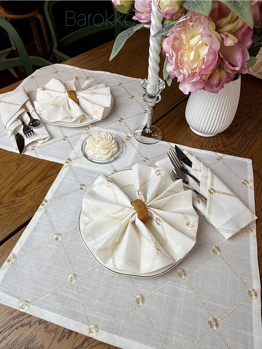 Комплект дорожка на стол + 4 салфетки (без колец)