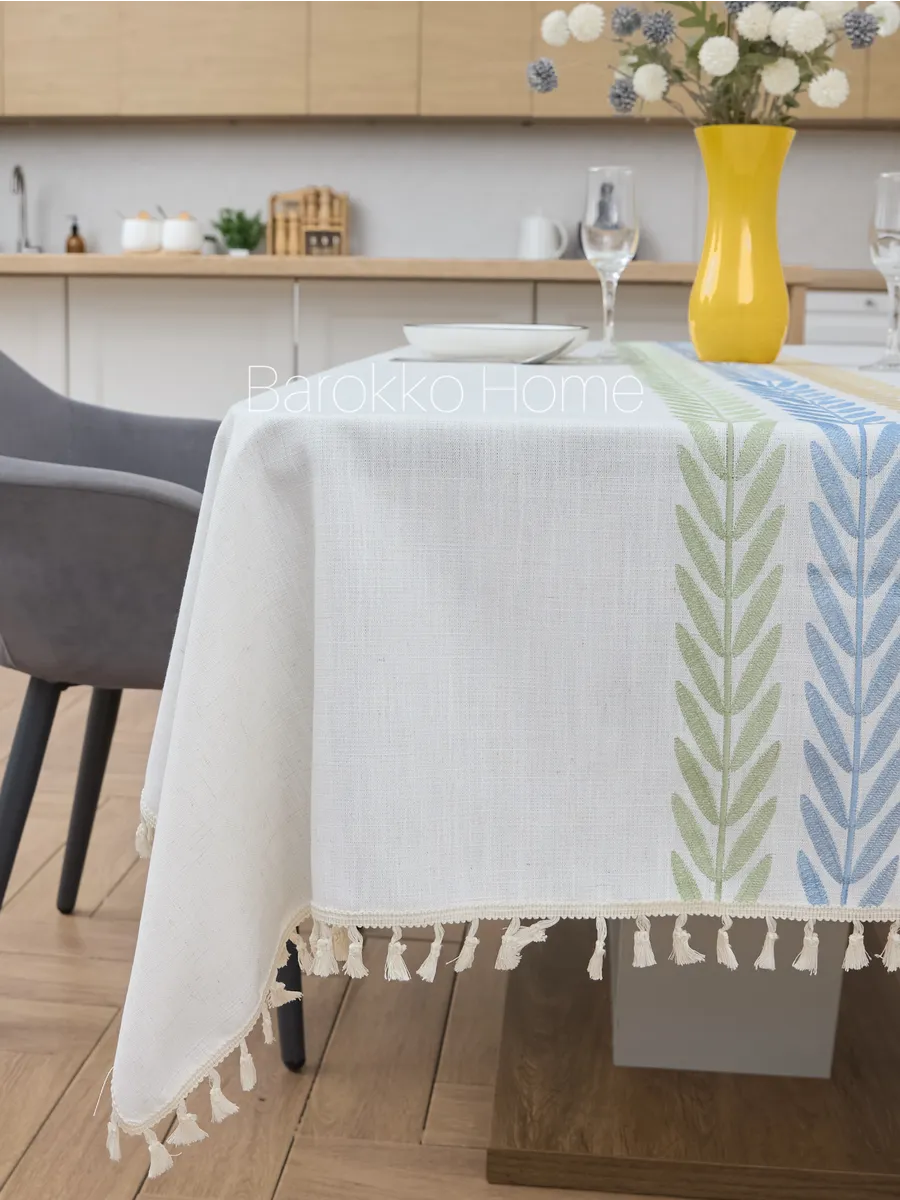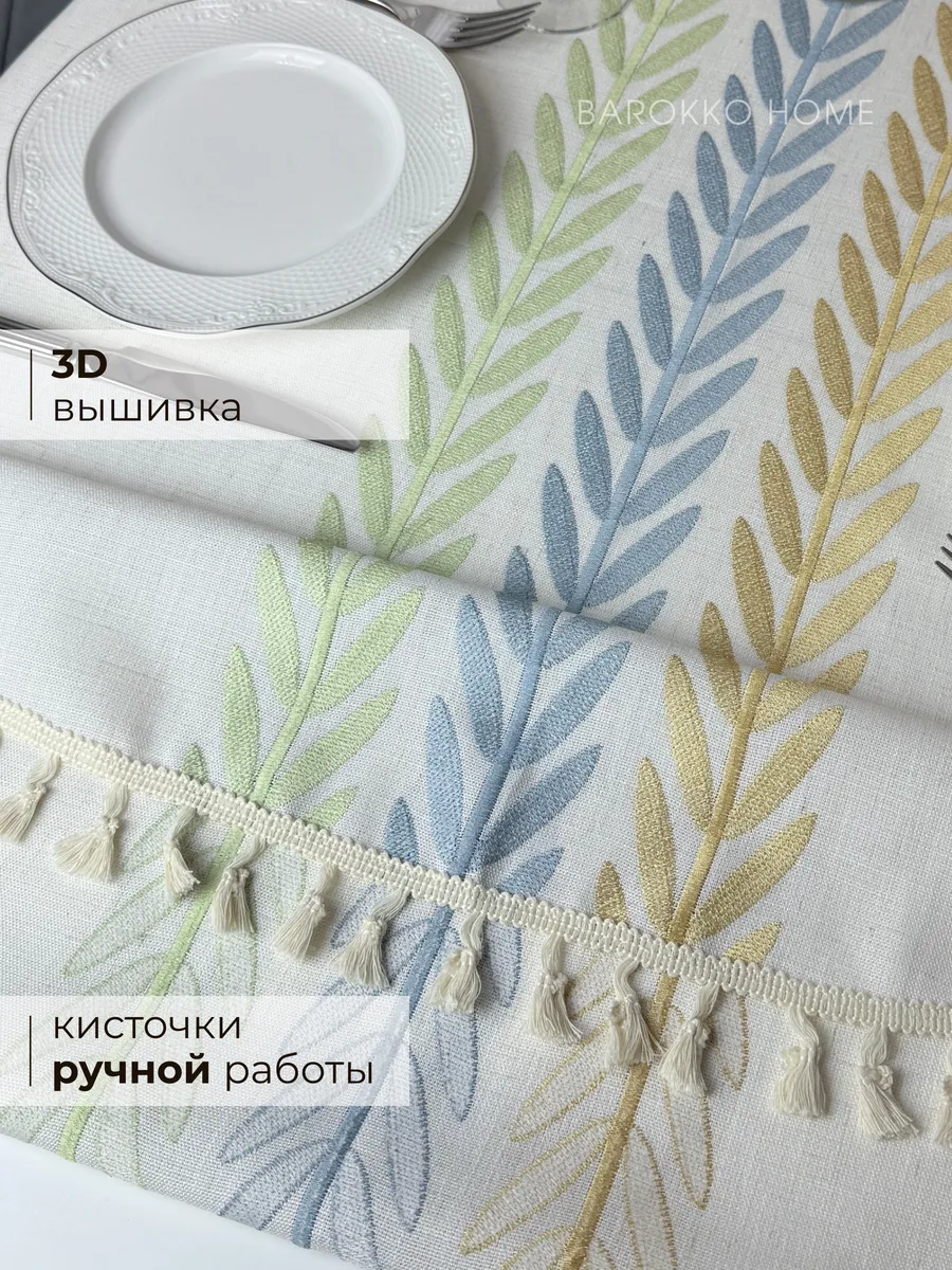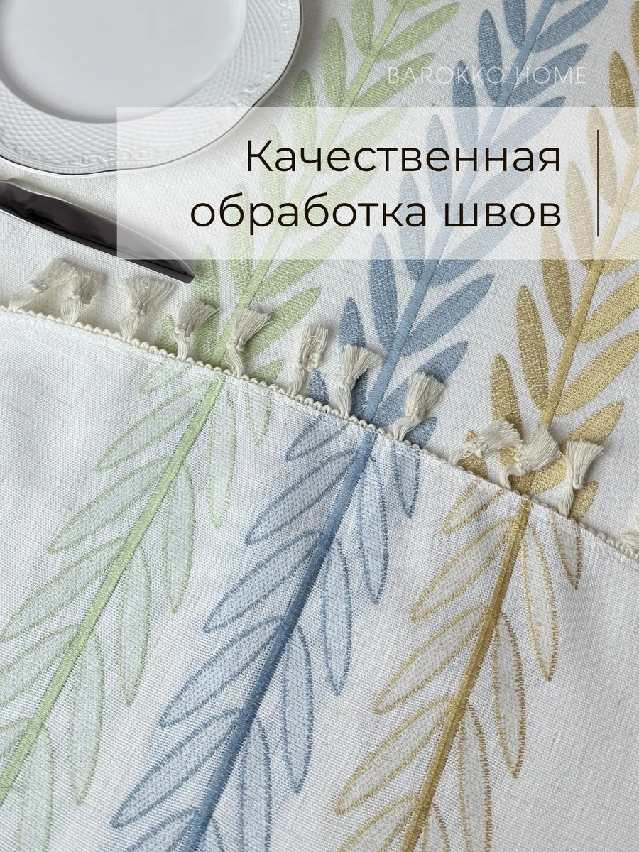 Украсьте вашу кухню или столовую с помощью нашей скатерти, выполненной из качественных материалов. В составе содержится лен и хлопок, что придает скатерти такие свойства, как гипоаллергенность и гигиеничность. Полиэстер в составе делает ткань более долговечной, износостойкой и помогает сохранять форму. Скатерть обладает водоотталкивающими свойствами.